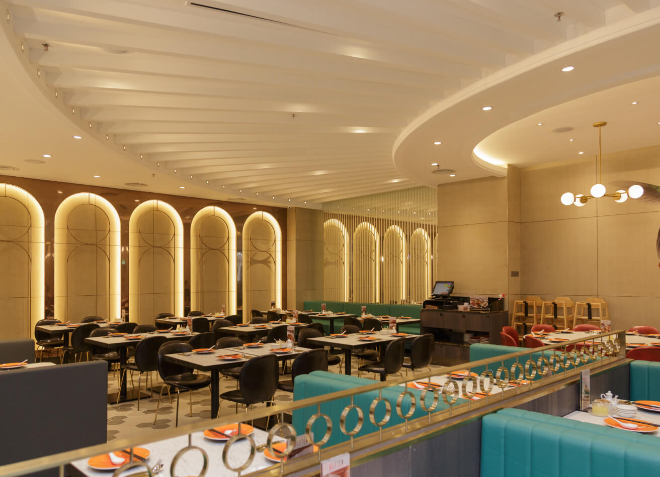 Be introduced to the world of communal dining in an exquisite setting. With modern louvre panels and ambient lighting, the restaurant spells subtle luxury in her own unique way.
